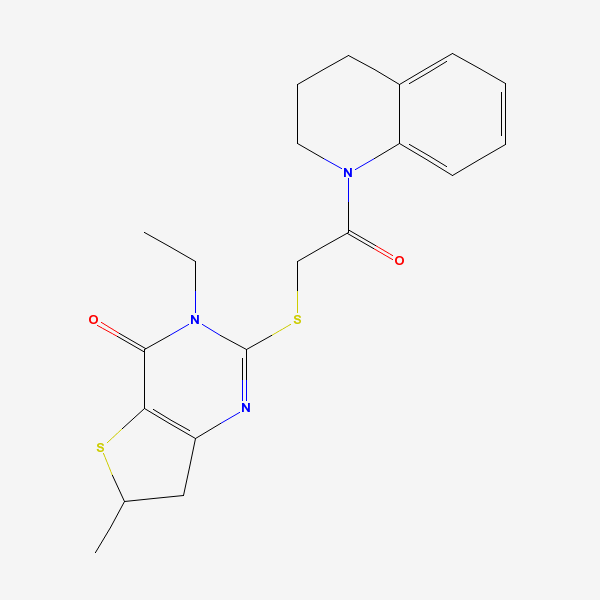 3-[2-(3,4-dihydro-2H-quinolin-1-yl)-2-oxo-ethyl]sulfanyl-4-ethyl-8-methyl-7-thia-2,4-diazabicyclo[4.3.0]nona-2,10-dien-5-one