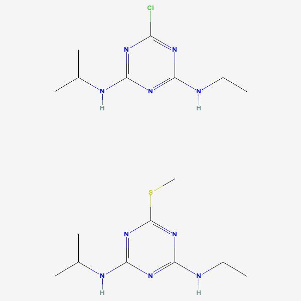 InChI: InChI=1/C9H17N5S.C8H14ClN5/c1-5-10-7-12-8(11-6(2)3)14-9(13-7)15-4;1-4-10-7-12-6(9)13-8(14-7)11-5(2)3/h6H,5H2,1-4H3,(H2,10,11,12,13,14);5H,4H2,1-3H3,(H2,10,11,12,13,14)/f/h10-11H;10-11H
