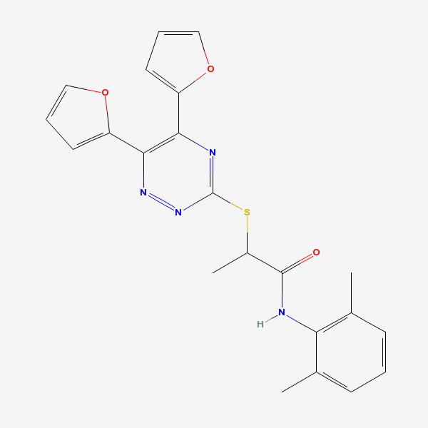 2-[[5,6-bis(2-furyl)-1,2,4-triazin-3-yl]sulfanyl]-N-(2,6-dimethylphenyl)propanamide