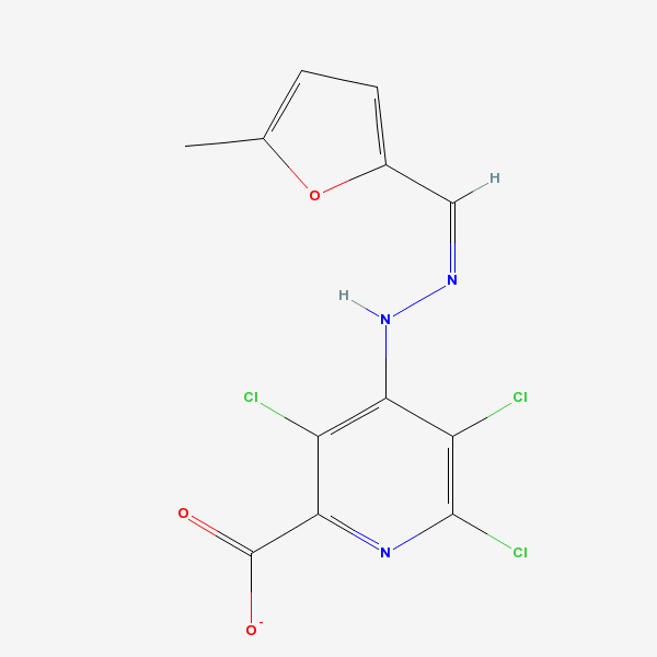 InChI: InChI=1/C12H8Cl3N3O3/c1-5-2-3-6(21-5)4-16-18-9-7(13)10(12(19)20)17-11(15)8(9)14/h2-4H,1H3,(H,17,18)(H,19,20)/p-1/b16-4-/fC12H7Cl3N3O3/h18H/q-1