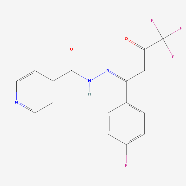 InChI: InChI=1/C16H11F4N3O2/c17-12-3-1-10(2-4-12)13(9-14(24)16(18,19)20)22-23-15(25)11-5-7-21-8-6-11/h1-8H,9H2,(H,23,25)/b22-13-/f/h23H