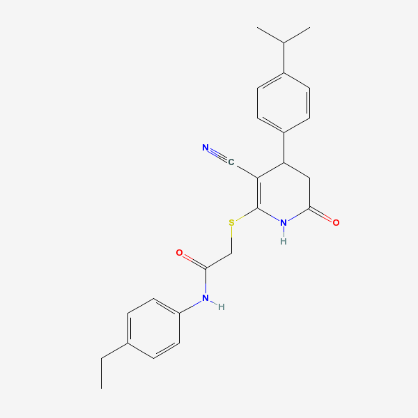 2-[[3-cyano-6-oxo-4-(4-propan-2-ylphenyl)-4,5-dihydro-1H-pyridin-2-yl]sulfanyl]-N-(4-ethylphenyl)acetamide