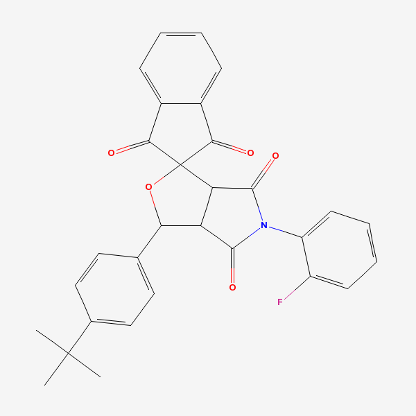 SMILES: CC(C)(C)C1=CC=C(C=C1)C2C3C(C(=O)N(C3=O)C4=CC=CC=C4F)C5(O2)C(=O)C6=CC=CC=C6C5=O