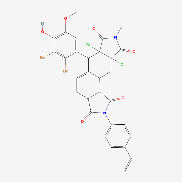 SMILES: CN1C(=O)C2(CC3C4C(CC=C3C(C2(C1=O)Cl)C5=CC(=C(C(=C5Br)Br)O)OC)C(=O)N(C4=O)C6=CC=C(C=C6)C=C)Cl