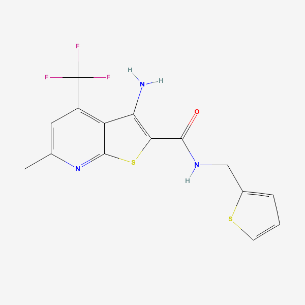 InChI: InChI=1/C15H12F3N3OS2/c1-7-5-9(15(16,17)18)10-11(19)12(24-14(10)21-7)13(22)20-6-8-3-2-4-23-8/h2-5H,6,19H2,1H3,(H,20,22)/f/h20H