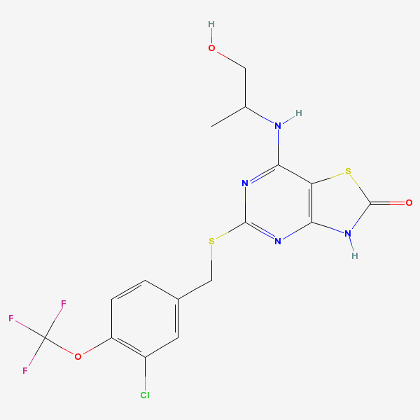 4-[[3-chloro-4-(trifluoromethoxy)phenyl]methylsulfanyl]-2-(1-hydroxypropan-2-ylamino)-9-thia-3,5,7-triazabicyclo[4.3.0]nona-2,4,10-trien-8-one