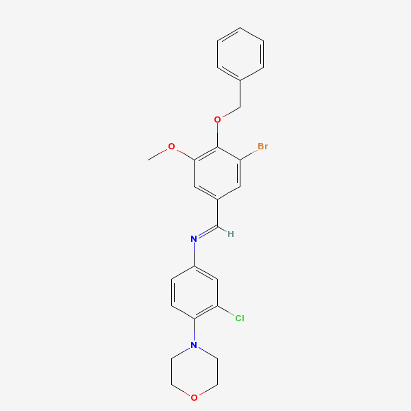 InChI: InChI=1/C25H24BrClN2O3/c1-30-24-14-19(13-21(26)25(24)32-17-18-5-3-2-4-6-18)16-28-20-7-8-23(22(27)15-20)29-9-11-31-12-10-29/h2-8,13-16H,9-12,17H2,1H3/b28-16+