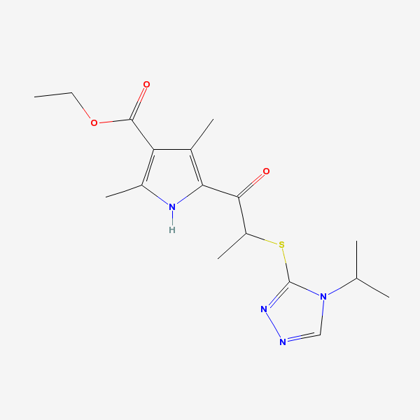 ethyl 2,4-dimethyl-5-[2-[(4-propan-2-yl-1,2,4-triazol-3-yl)sulfanyl]propanoyl]-1H-pyrrole-3-carboxylate