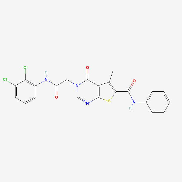 InChI: InChI=1/C22H16Cl2N4O3S/c1-12-17-21(32-19(12)20(30)26-13-6-3-2-4-7-13)25-11-28(22(17)31)10-16(29)27-15-9-5-8-14(23)18(15)24/h2-9,11H,10H2,1H3,(H,26,30)(H,27,29)/f/h26-27H