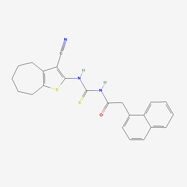 InChI: InChI=1/C23H21N3OS2/c24-14-19-18-11-2-1-3-12-20(18)29-22(19)26-23(28)25-21(27)13-16-9-6-8-15-7-4-5-10-17(15)16/h4-10H,1-3,11-13H2,(H2,25,26,27,28)/f/h25-26H