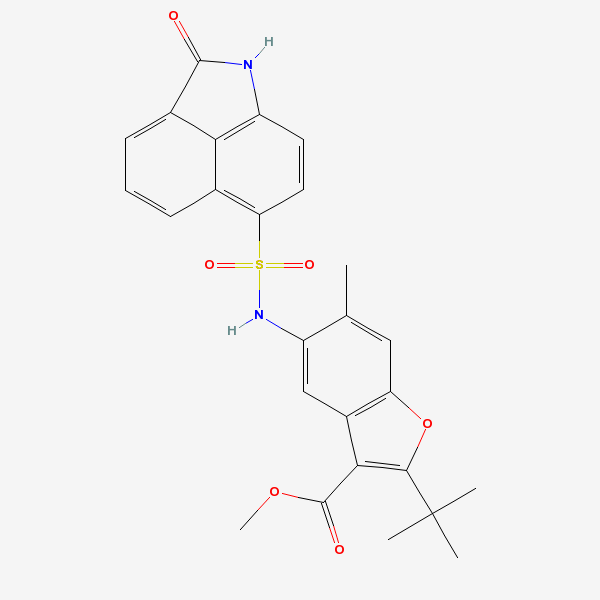 InChI: InChI=1/C26H24N2O6S/c1-13-11-19-16(22(25(30)33-5)23(34-19)26(2,3)4)12-18(13)28-35(31,32)20-10-9-17-21-14(20)7-6-8-15(21)24(29)27-17/h6-12,28H,1-5H3,(H,27,29)/f/h27H