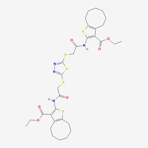 ethyl 10-[[2-[[5-[(11-ethoxycarbonyl-9-thiabicyclo[6.3.0]undeca-10,12-dien-10-yl)carbamoylmethylsulfanyl]-1,3,4-thiadiazol-2-yl]sulfanyl]acetyl]amino]-9-thiabicyclo[6.3.0]undeca-10,12-diene-11-carboxylate