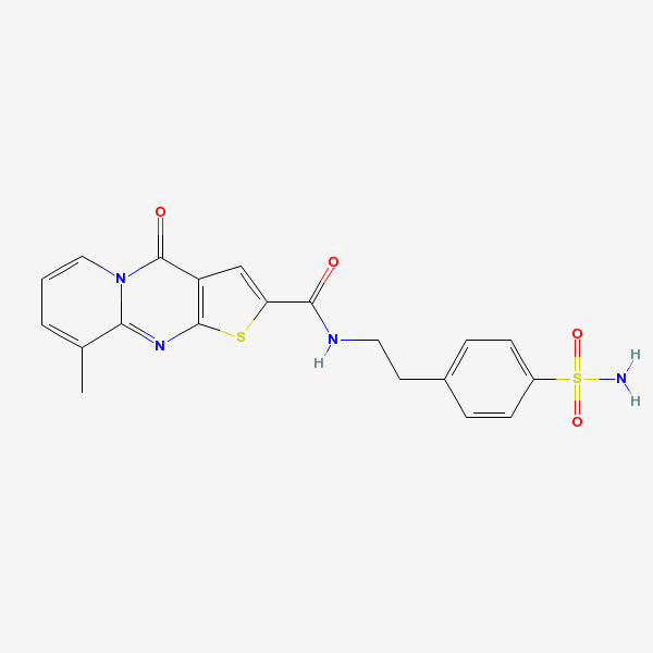 InChI: InChI=1/C20H18N4O4S2/c1-12-3-2-10-24-17(12)23-19-15(20(24)26)11-16(29-19)18(25)22-9-8-13-4-6-14(7-5-13)30(21,27)28/h2-7,10-11H,8-9H2,1H3,(H,22,25)(H2,21,27,28)/f/h22H,21H2