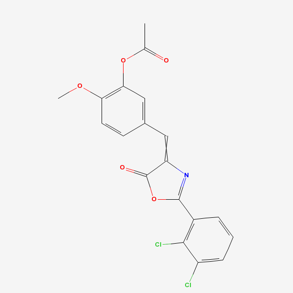 InChI: InChI=1/C19H13Cl2NO5/c1-10(23)26-16-9-11(6-7-15(16)25-2)8-14-19(24)27-18(22-14)12-4-3-5-13(20)17(12)21/h3-9H,1-2H3