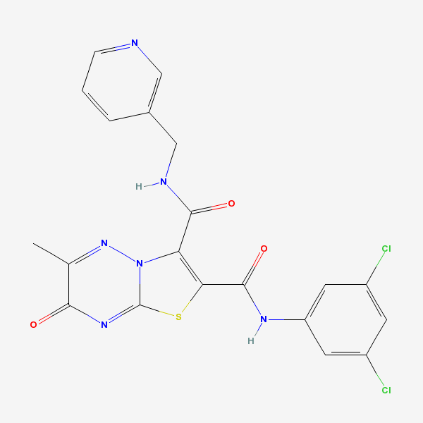 N-(3,5-dichlorophenyl)-3-methyl-4-oxo-N'-(pyridin-3-ylmethyl)-7-thia-1,2,5-triazabicyclo[4.3.0]nona-2,5,8-triene-8,9-dicarboxamide