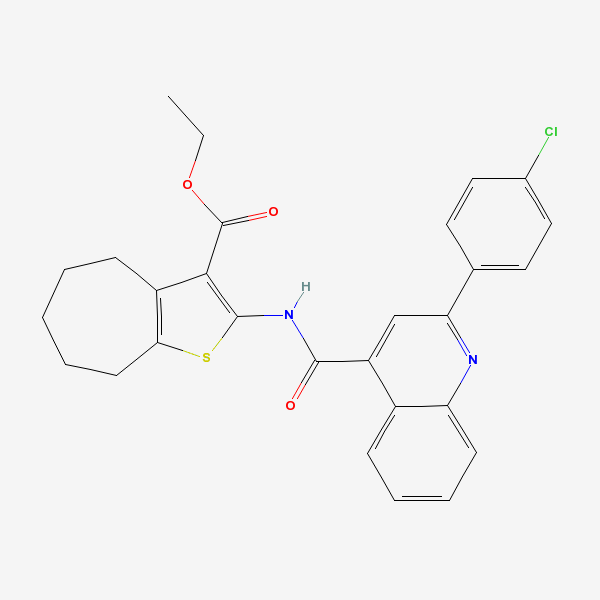 SMILES: CCOC(=O)C1=C(SC2=C1CCCCC2)NC(=O)C3=CC(=NC4=CC=CC=C43)C5=CC=C(C=C5)Cl