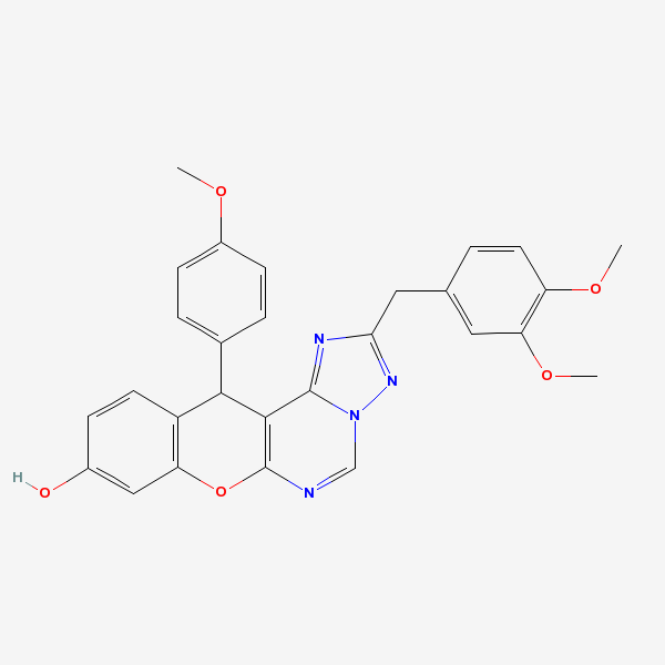 InChI: InChI=1/C28H24N4O5/c1-34-19-8-5-17(6-9-19)25-20-10-7-18(33)14-22(20)37-28-26(25)27-30-24(31-32(27)15-29-28)13-16-4-11-21(35-2)23(12-16)36-3/h4-12,14-15,25,33H,13H2,1-3H3