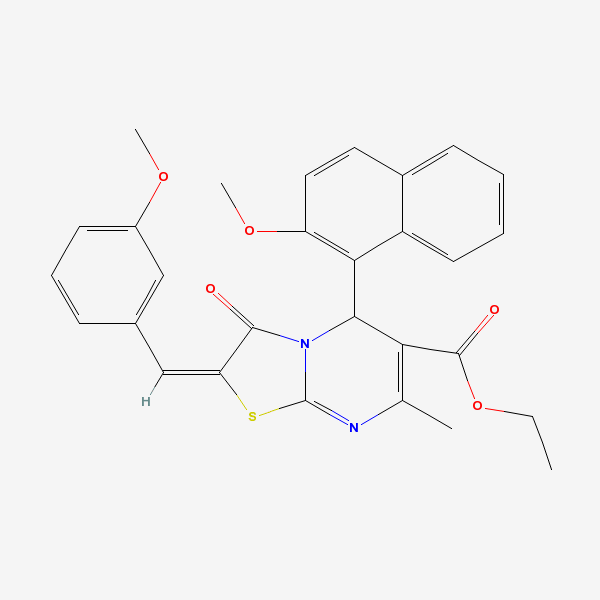 ethyl (8E)-2-(2-methoxynaphthalen-1-yl)-8-[(3-methoxyphenyl)methylidene]-4-methyl-9-oxo-7-thia-1,5-diazabicyclo[4.3.0]nona-3,5-diene-3-carboxylate