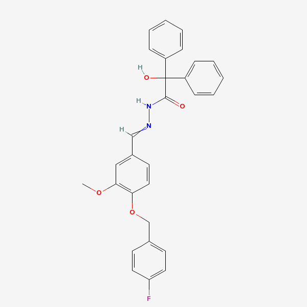 InChI: InChI=1/C29H25FN2O4/c1-35-27-18-22(14-17-26(27)36-20-21-12-15-25(30)16-13-21)19-31-32-28(33)29(34,23-8-4-2-5-9-23)24-10-6-3-7-11-24/h2-19,34H,20H2,1H3,(H,32,33)/f/h32H
