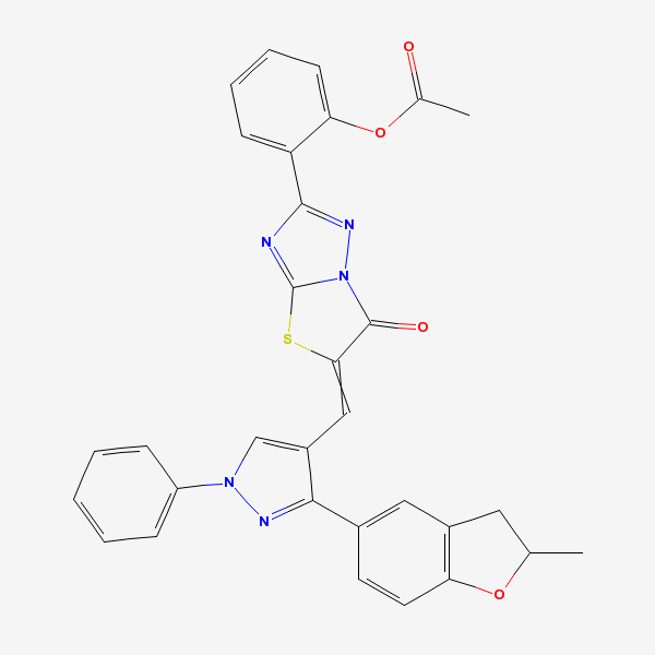 InChI: InChI=1/C31H23N5O4S/c1-18-14-21-15-20(12-13-25(21)39-18)28-22(17-35(33-28)23-8-4-3-5-9-23)16-27-30(38)36-31(41-27)32-29(34-36)24-10-6-7-11-26(24)40-19(2)37/h3-13,15-18H,14H2,1-2H3