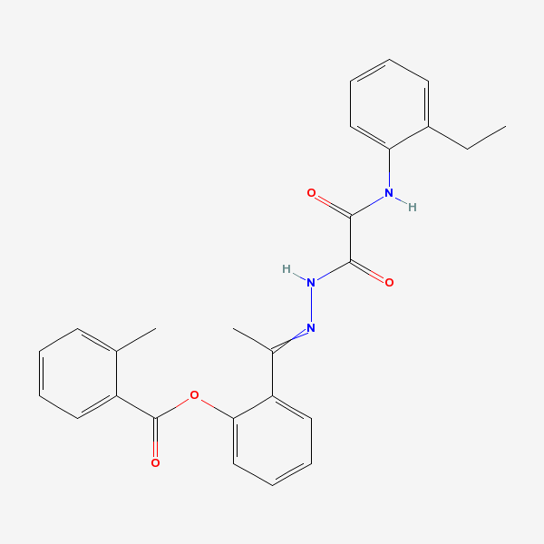 SMILES: CCC1=CC=CC=C1NC(=O)C(=O)NN=C(C)C2=CC=CC=C2OC(=O)C3=CC=CC=C3C