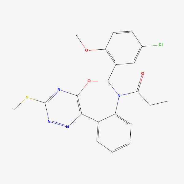 InChI: InChI=1/C21H19ClN4O3S/c1-4-17(27)26-15-8-6-5-7-13(15)18-19(23-21(30-3)25-24-18)29-20(26)14-11-12(22)9-10-16(14)28-2/h5-11,20H,4H2,1-3H3