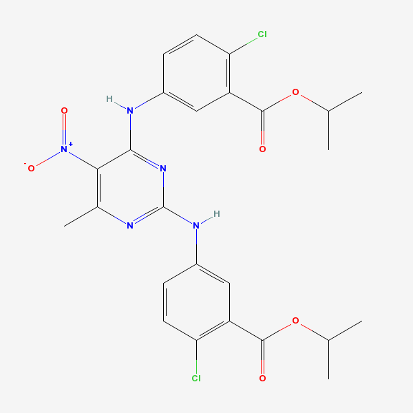 SMILES: CC1=C(C(=NC(=N1)NC2=CC(=C(C=C2)Cl)C(=O)OC(C)C)NC3=CC(=C(C=C3)Cl)C(=O)OC(C)C)[N+](=O)[O-]