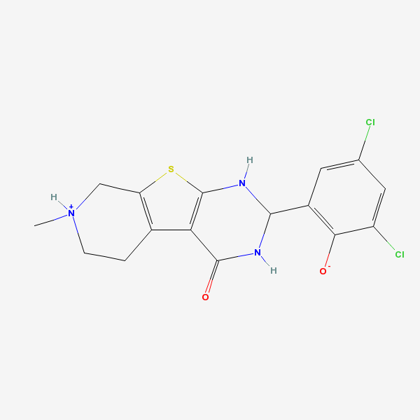 InChI: InChI=1/C16H15Cl2N3O2S/c1-21-3-2-8-11(6-21)24-16-12(8)15(23)19-14(20-16)9-4-7(17)5-10(18)13(9)22/h4-5,14,20,22H,2-3,6H2,1H3,(H,19,23)/f/h22h,19,21H