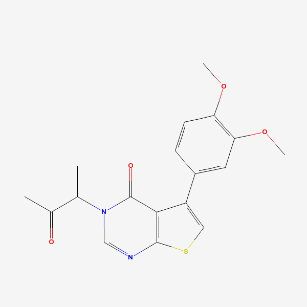SMILES: CC(C(=O)C)N1C=NC2=C(C1=O)C(=CS2)C3=CC(=C(C=C3)OC)OC