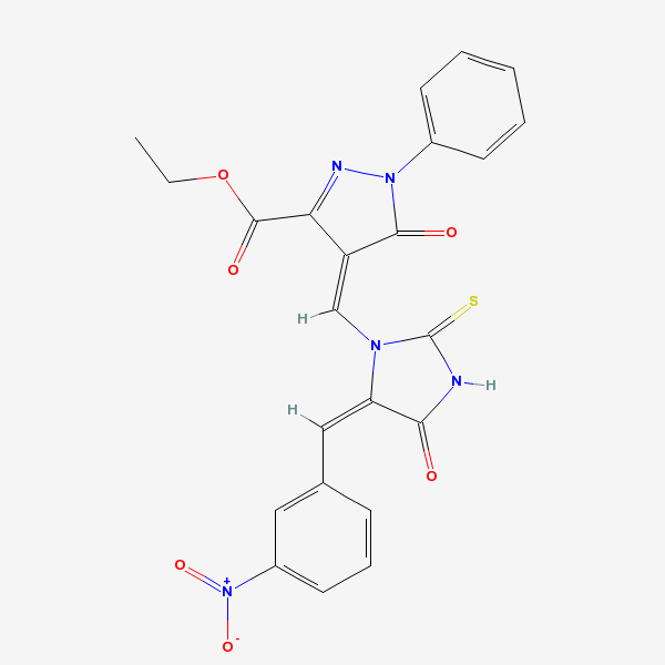 ethyl (4Z)-4-[[(5E)-5-[(3-nitrophenyl)methylidene]-4-oxo-2-sulfanylidene-imidazolidin-1-yl]methylidene]-5-oxo-1-phenyl-pyrazole-3-carboxylate