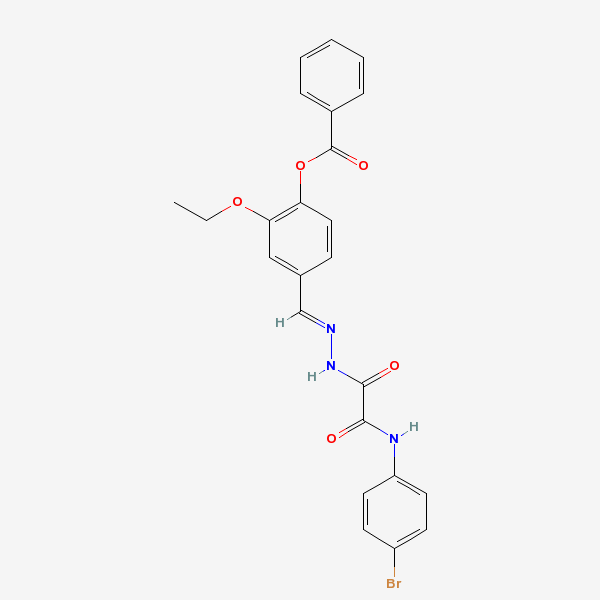 InChI: InChI=1/C24H20BrN3O5/c1-2-32-21-14-16(8-13-20(21)33-24(31)17-6-4-3-5-7-17)15-26-28-23(30)22(29)27-19-11-9-18(25)10-12-19/h3-15H,2H2,1H3,(H,27,29)(H,28,30)/b26-15+/f/h27-28H