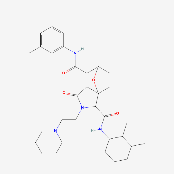 InChI: InChI=1/C33H46N4O4/c1-20-17-21(2)19-24(18-20)34-30(38)27-26-11-12-33(41-26)28(27)32(40)37(16-15-36-13-6-5-7-14-36)29(33)31(39)35-25-10-8-9-22(3)23(25)4/h11-12,17-19,22-23,25-29H,5-10,13-16H2,1-4H3,(H,34,38)(H,35,39)/f/h34-35H