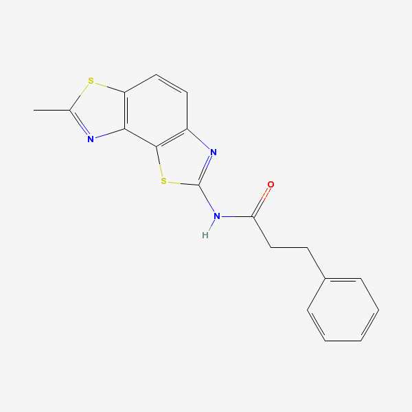 InChI: InChI=1/C18H15N3OS2/c1-11-19-16-14(23-11)9-8-13-17(16)24-18(20-13)21-15(22)10-7-12-5-3-2-4-6-12/h2-6,8-9H,7,10H2,1H3,(H,20,21,22)/f/h21H