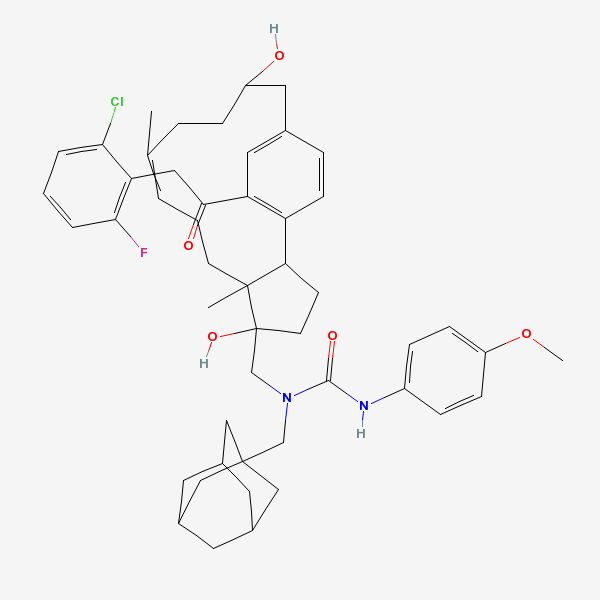 InChI: InChI=1/C49H60ClFN2O5/c1-31-6-5-18-47(2)42(39-16-10-32(23-37(54)13-9-31)24-40(39)45(55)25-41-43(50)7-4-8-44(41)51)17-19-49(47,57)30-53(46(56)52-36-11-14-38(58-3)15-12-36)29-48-26-33-20-34(27-48)22-35(21-33)28-48/h4,6-8,10-12,14-16,24,33-35,37,42,54,57H,5,9,13,17-23,25-30H2,1-3H3,(H,52,56)/f/h52H
