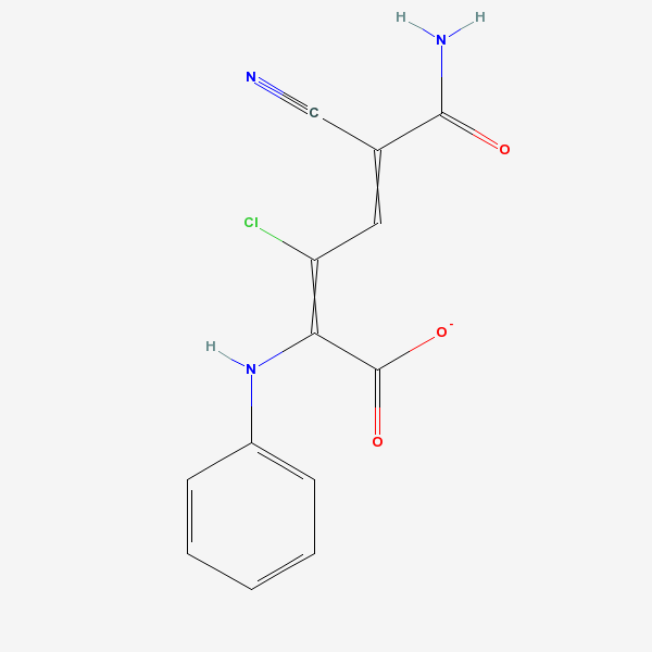 SMILES: C1=CC=C(C=C1)NC(=C(C=C(C#N)C(=O)N)Cl)C(=O)[O-]