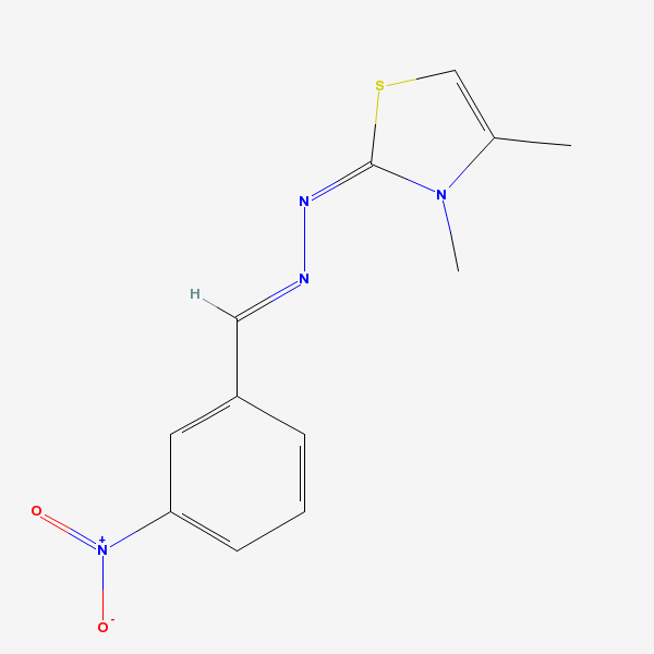 InChI: InChI=1/C12H12N4O2S/c1-9-8-19-12(15(9)2)14-13-7-10-4-3-5-11(6-10)16(17)18/h3-8H,1-2H3/b13-7+,14-12+