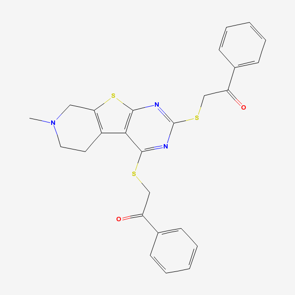 InChI: InChI=1/C26H23N3O2S3/c1-29-13-12-19-22(14-29)34-25-23(19)24(32-15-20(30)17-8-4-2-5-9-17)27-26(28-25)33-16-21(31)18-10-6-3-7-11-18/h2-11H,12-16H2,1H3