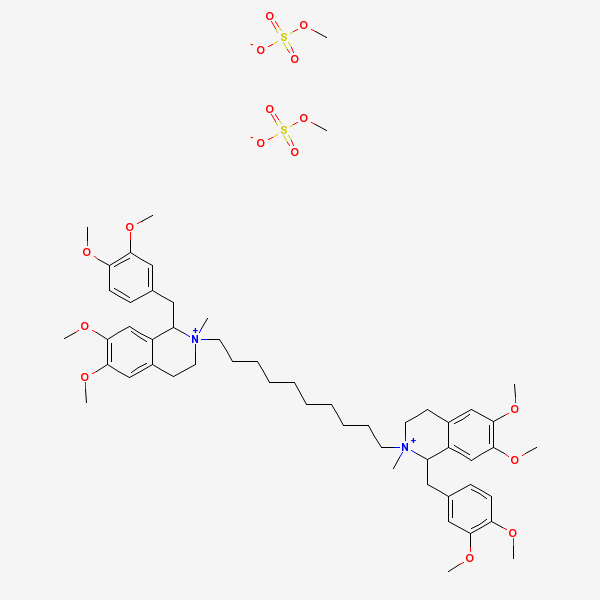 InChI: InChI=1/C52H74N2O8.2CH4O4S/c1-53(27-23-39-33-49(59-7)51(61-9)35-41(39)43(53)29-37-19-21-45(55-3)47(31-37)57-5)25-17-15-13-11-12-14-16-18-26-54(2)28-24-40-34-50(60-8)52(62-10)36-42(40)44(54)30-38-20-22-46(56-4)48(32-38)58-6;2*1-5-6(2,3)4/h19-22,31-36,43-44H,11-18,23-30H2,1-10H3;2*1H3,(H,2,3,4)/q+2;;/p-2/fC52H74N2O8.2CH3O4S/qm;2*-1