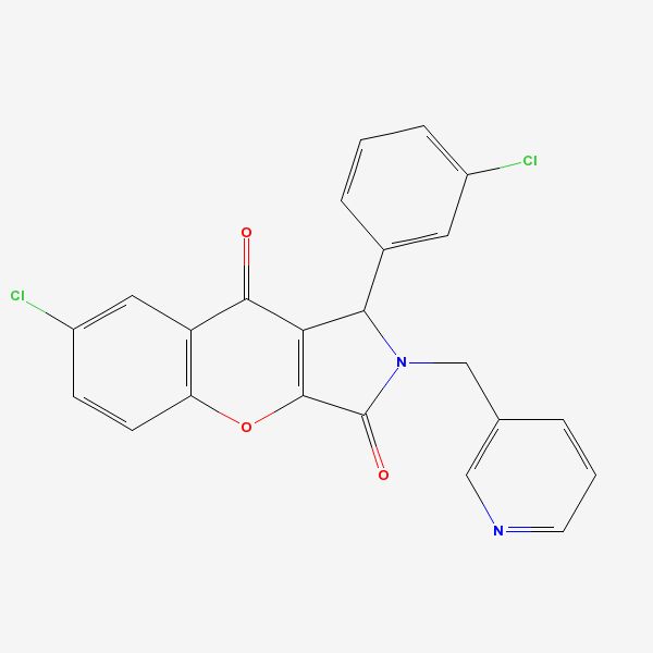 InChI: InChI=1/C23H14Cl2N2O3/c24-15-5-1-4-14(9-15)20-19-21(28)17-10-16(25)6-7-18(17)30-22(19)23(29)27(20)12-13-3-2-8-26-11-13/h1-11,20H,12H2