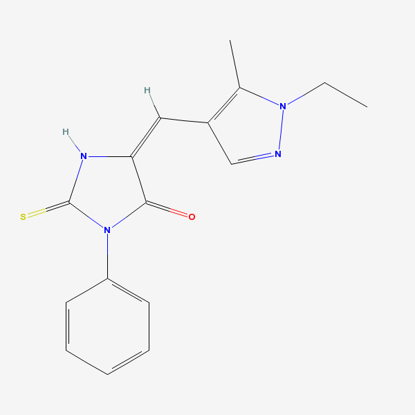 (5E)-5-[(1-ethyl-5-methyl-pyrazol-4-yl)methylidene]-3-phenyl-2-sulfanylidene-imidazolidin-4-one