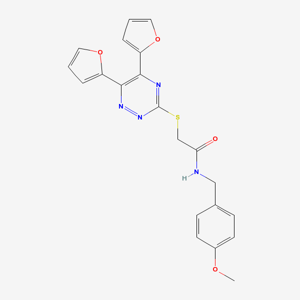 2-[[5,6-bis(2-furyl)-1,2,4-triazin-3-yl]sulfanyl]-N-[(4-methoxyphenyl)methyl]acetamide